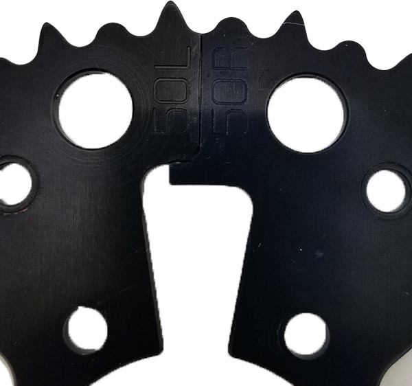Left & right sprockets snap together for quick, easy and accurate installation on sprocket hub.
