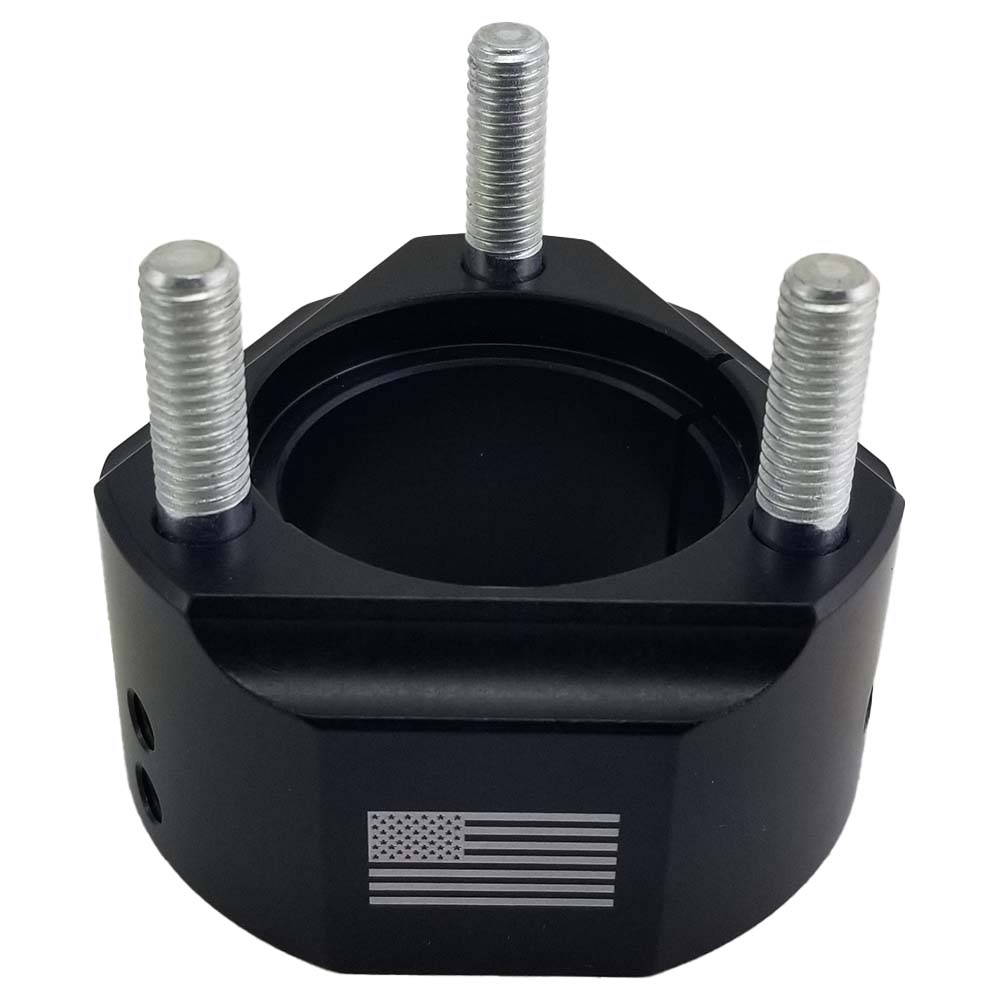 PKT's 40mm x 35mm shorty hubs. These hubs are designed especially for the LO206 karts with 40mm axles. The hubs free the kart up and let the axle do its work. They are designed with a single 8mm bolt to provide superior clamping with no lateral movement. We also added dual 6mm set screws to keep the 8mm key in its place, again ensuring no lateral movement. As always 8mm zinc plated series 4100 wheel studs on a 52mm metric bolt pattern. Finished in black anodize with laser engraving. Plastic wheel register not included.