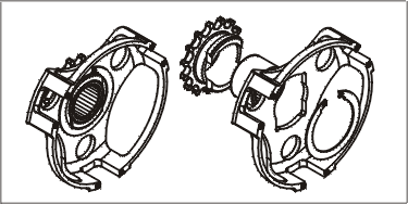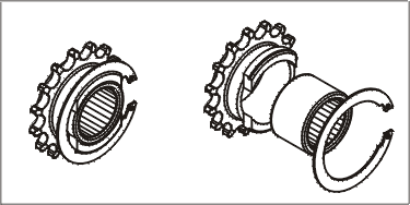 16. Hold clutch and rotate Basket / Sprocket assembly to check for binding. If basket does not spin freely, check end play. End play can be measured with a feeler gauge placed between the snap ring and the outer thrust washer.