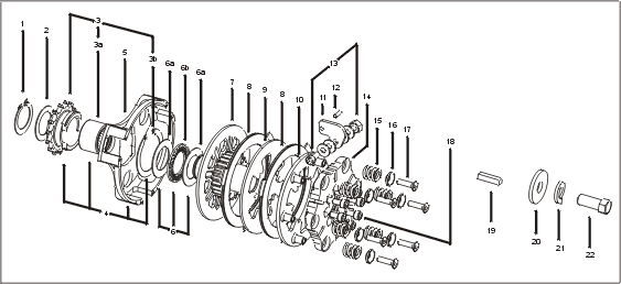 Note: For inspection, the only item that must be removed is the basket. Just remove the snap ring and outer thrust washer. If the friction disks are worn below .110" thick then the clutch should be disassembled and rebuilt.